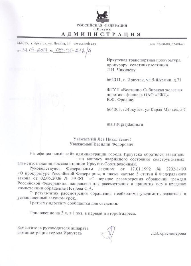 айГражданинОтправлено 26.05.2017: "Администрация города Иркутска"