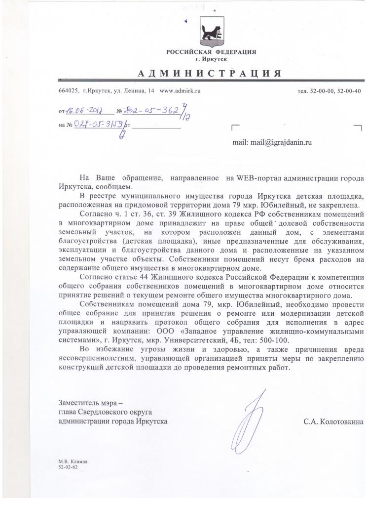 айГражданинОтправлено 26.05.2017: "Администрация города Иркутска"