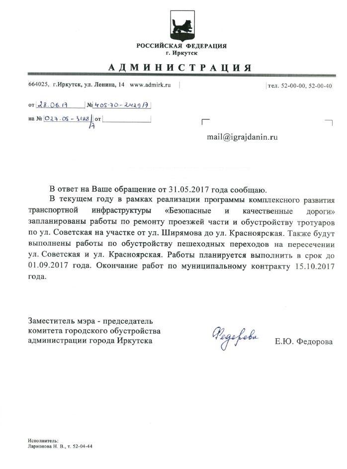 Отправлено 29.05.2017: "Администрация города Иркутска"