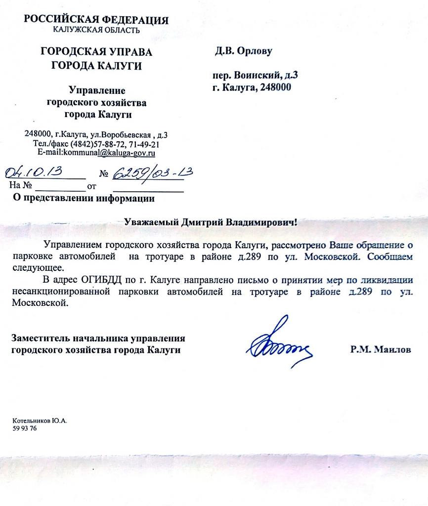 айГражданинОтправлено 04.09.2013: Электронная приемная Городской управы Калуги, "Управление административно-технического контроля Калужской области"