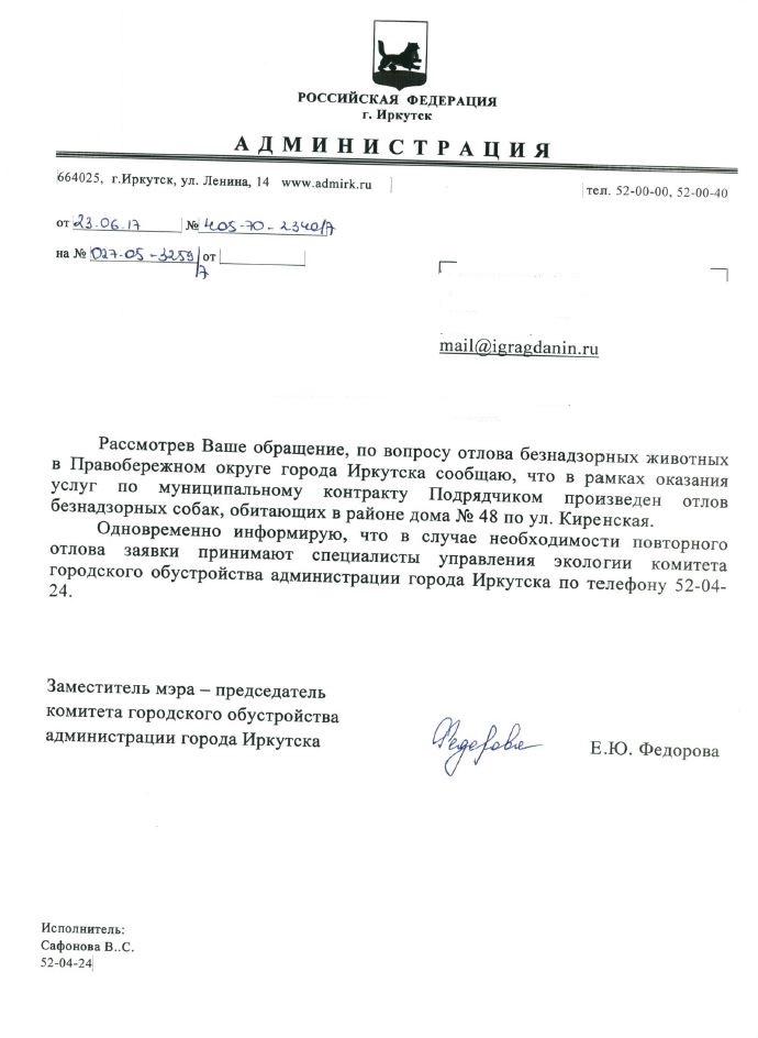 Отправлено 31.05.2017: "Администрация города Иркутска"