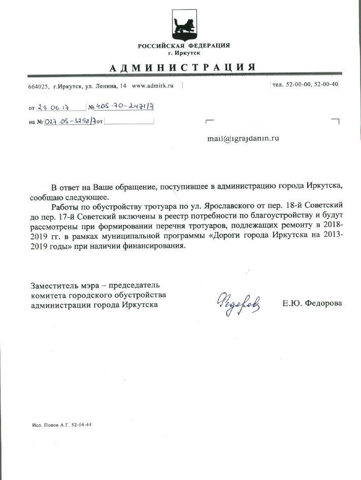 Отправлено 31.05.2017: "Администрация города Иркутска"