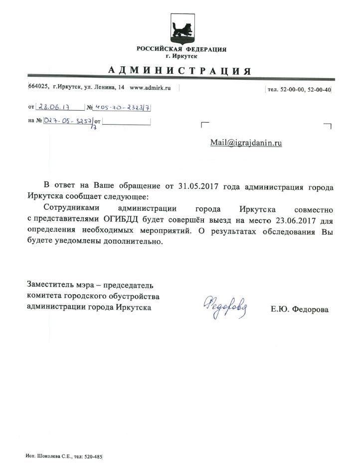 айГражданинОтправлено 31.05.2017: "Администрация города Иркутска"