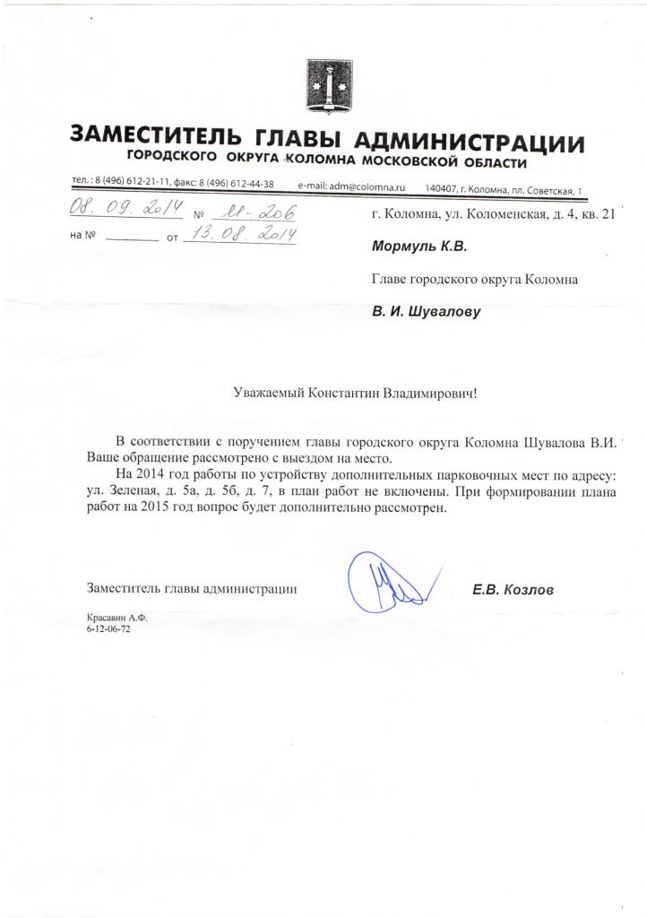 айГражданинОтправлено 02.09.2014: "Администрация городского округа Коломна"