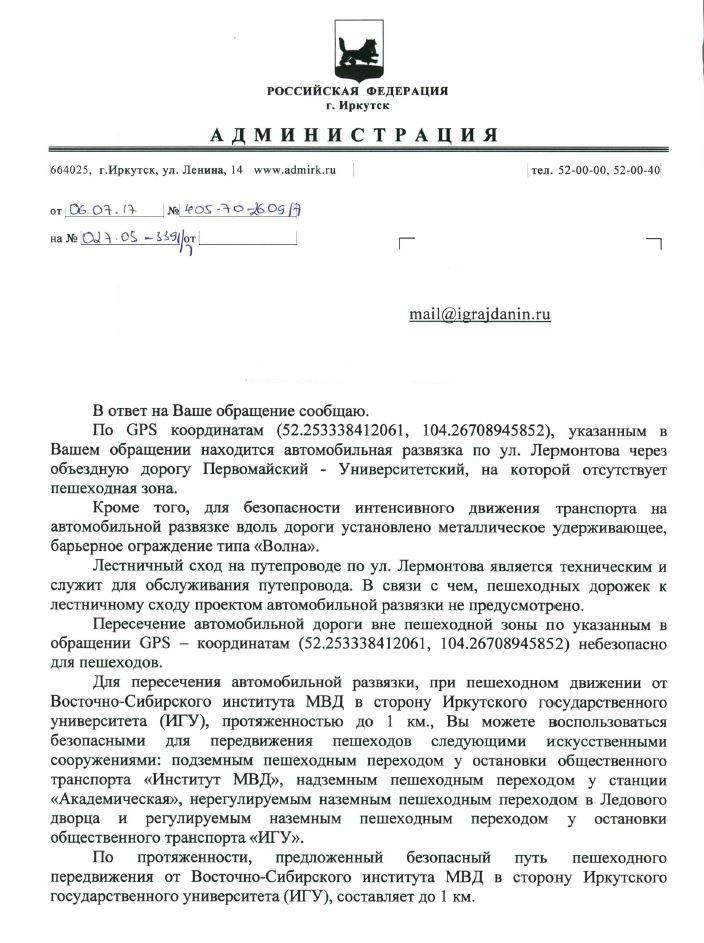айГражданинОтправлено 05.06.2017: "Администрация города Иркутска"