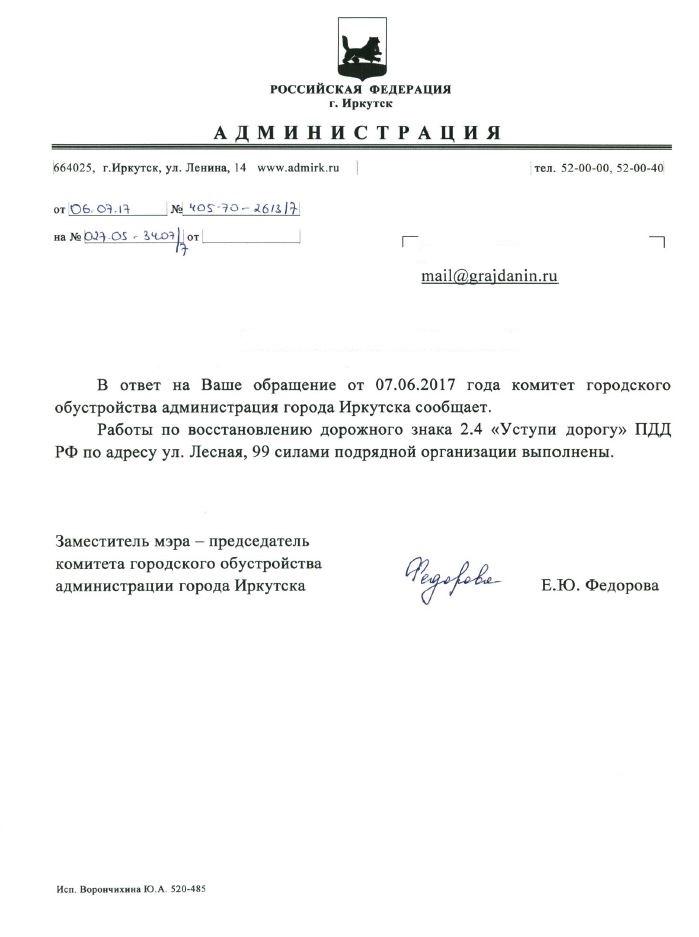 айГражданинОтправлено 05.06.2017: "Администрация города Иркутска"