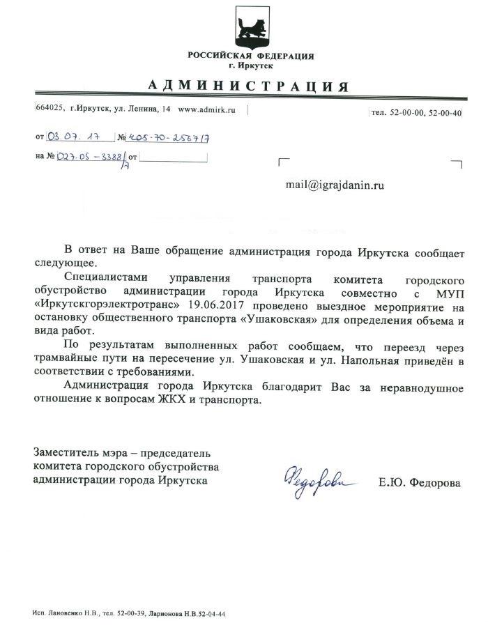 айГражданинОтправлено 26.07.2017: "Администрация города Иркутска"