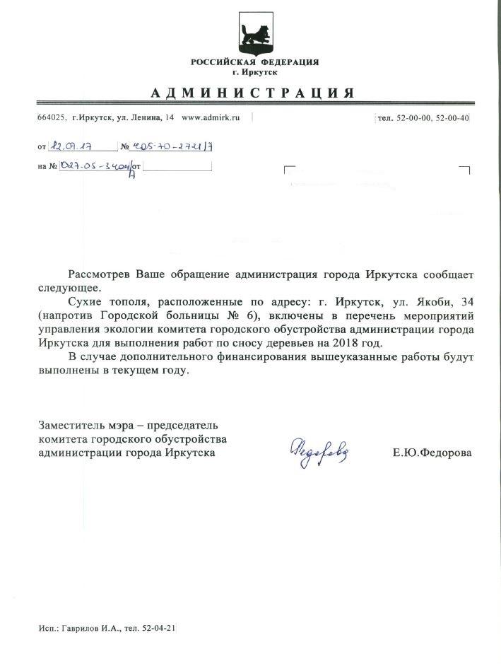 айГражданинОтправлено 05.06.2017: "Администрация города Иркутска"