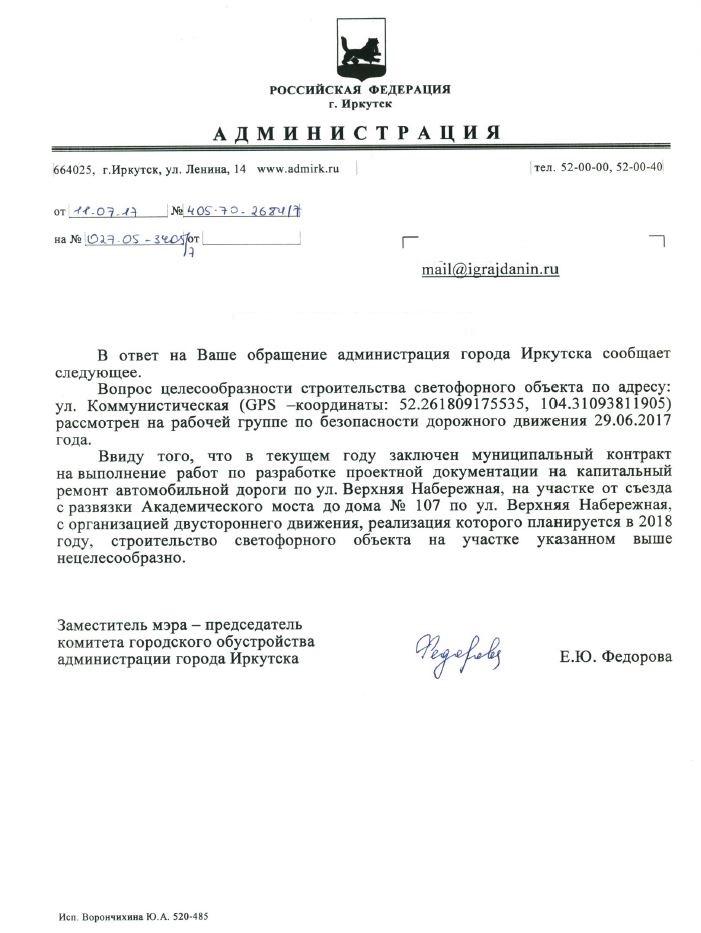 айГражданинОтправлено 05.06.2017: "Администрация города Иркутска"