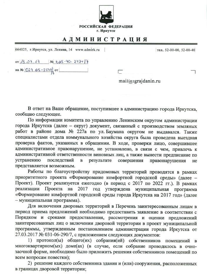айГражданинОтправлено 06.06.2017: "Администрация города Иркутска"