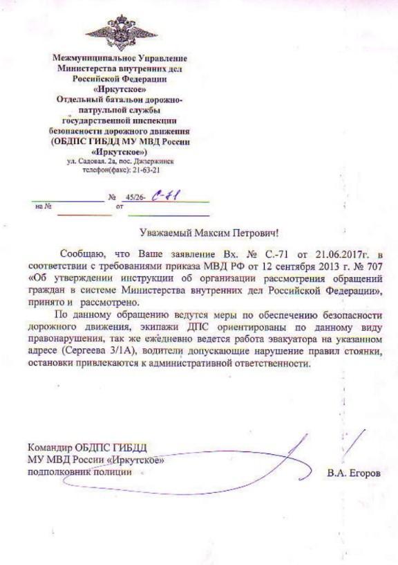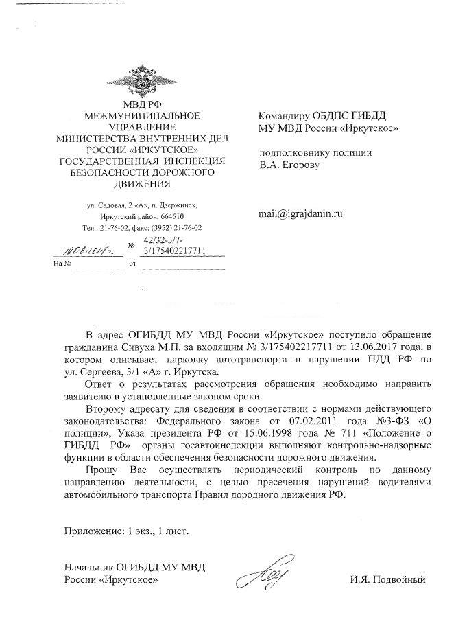 айГражданинОтправлено 06.06.2017: "Управление ГИБДД ГУ МВД России по Иркутской области"