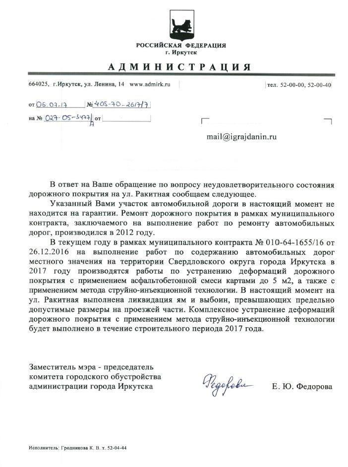 айГражданинОтправлено 08.06.2017: "Администрация города Иркутска"
