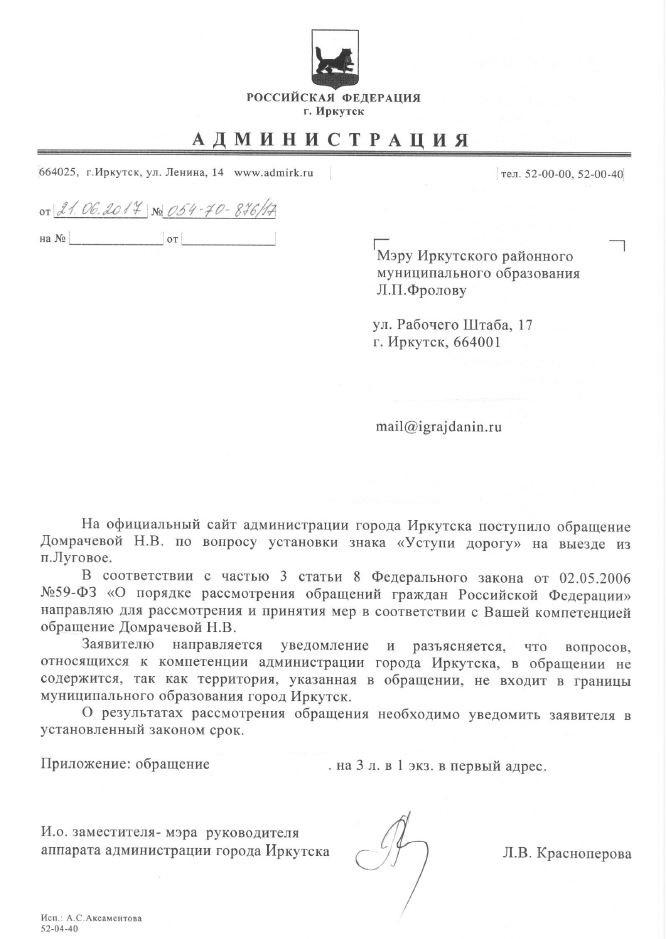 айГражданинОтправлено 13.06.2017: "Администрация города Иркутска"