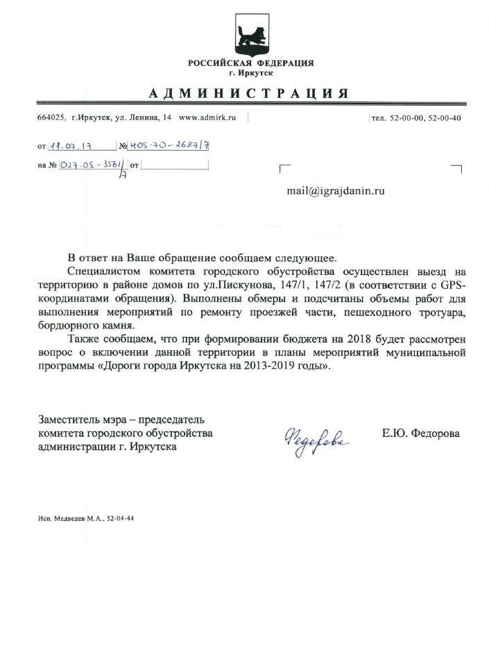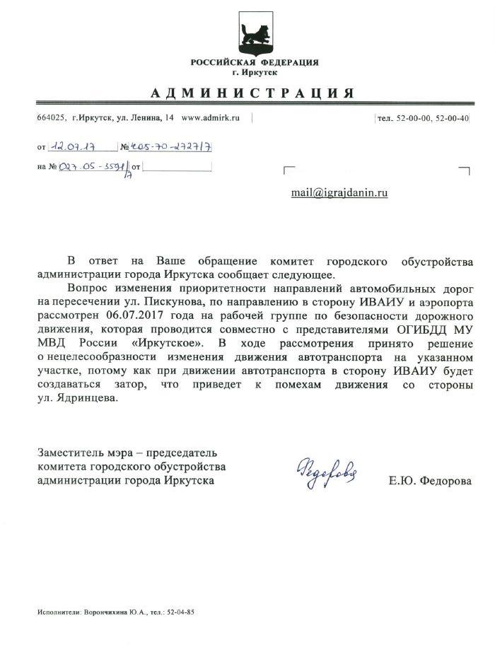 айГражданинОтправлено 13.06.2017: "Администрация города Иркутска"
