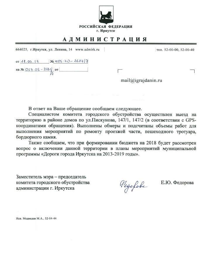 айГражданинОтправлено 13.06.2017: "Администрация города Иркутска"
