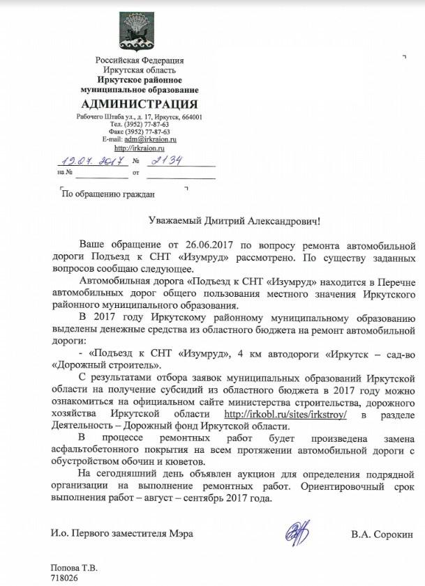 айГражданинОтправлено 16.06.2017: "Администрация Иркутского района"