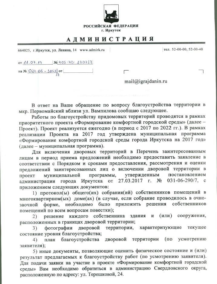 айГражданинОтправлено 21.06.2017: "Администрация города Иркутска"