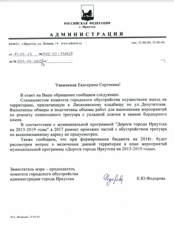 Отправлено 23.06.2017: "Администрация города Иркутска"