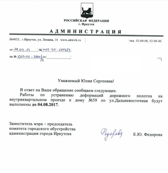 Отправлено 23.06.2017: "Администрация города Иркутска"