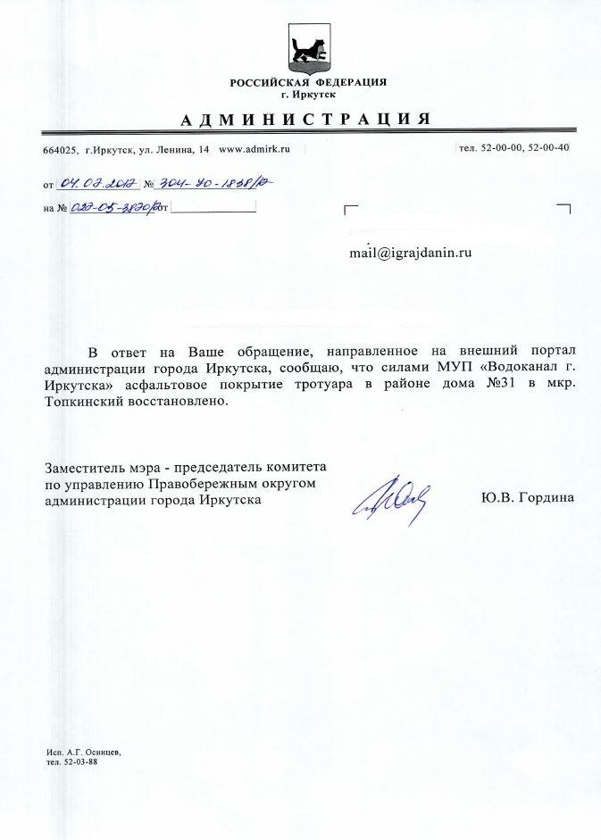 Отправлено 23.06.2017: "Администрация города Иркутска"