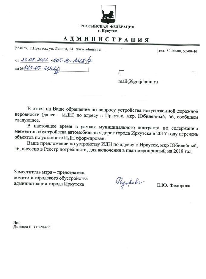 Отправлено 23.06.2017: "Администрация города Иркутска"