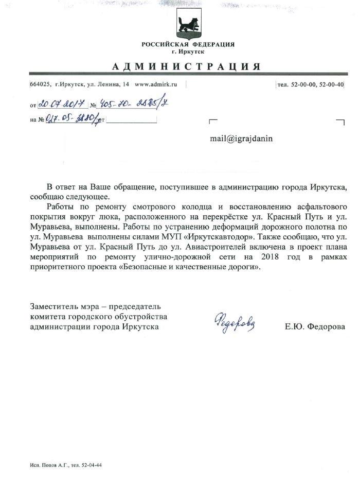 айГражданинОтправлено 23.06.2017: "Администрация города Иркутска"