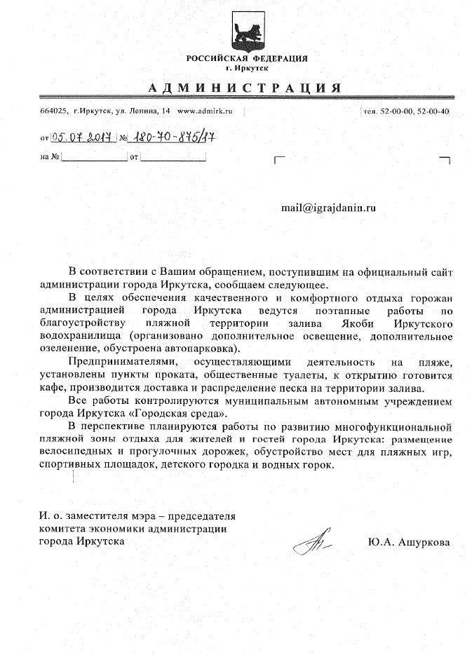 айГражданинОтправлено 26.06.2017: "Администрация города Иркутска"
