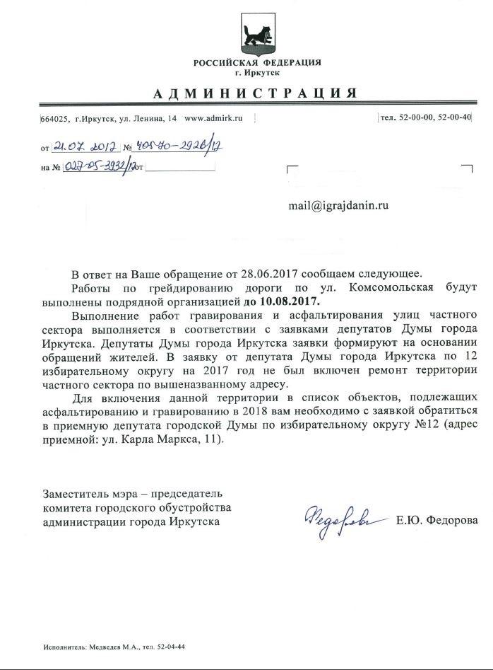айГражданинОтправлено 26.06.2017: "Администрация города Иркутска"
