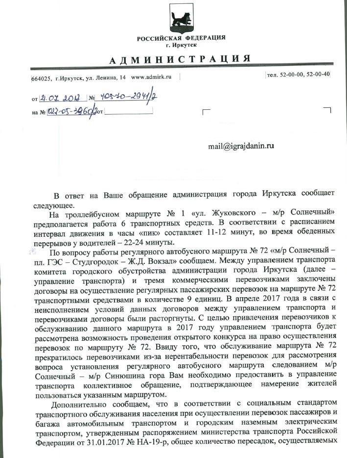айГражданинОтправлено 27.06.2017: "Администрация города Иркутска"