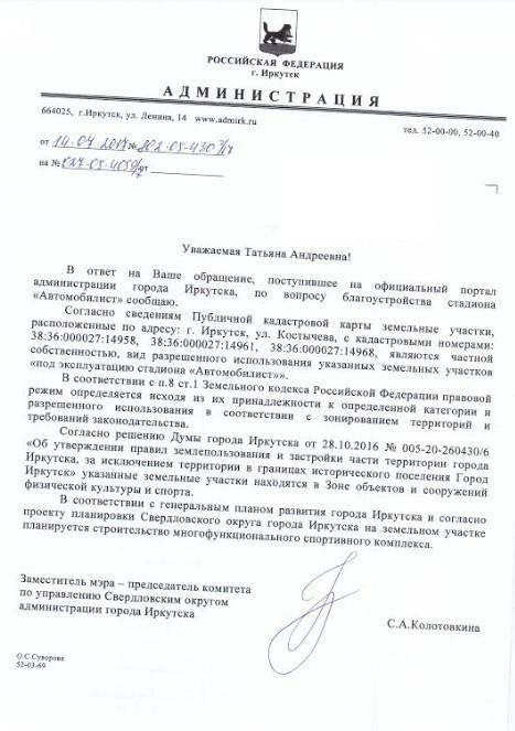 Отправлено 28.06.2017: "Администрация города Иркутска"