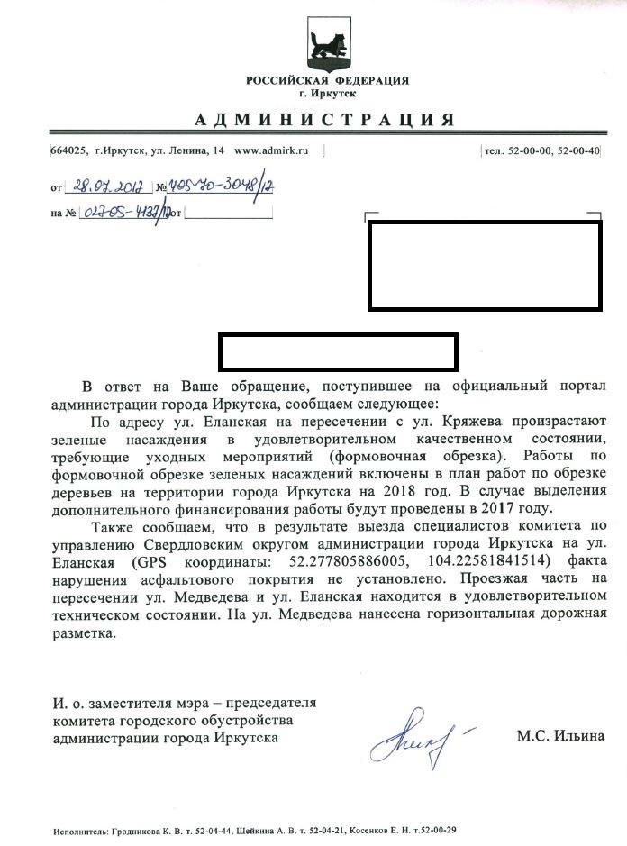 айГражданинОтправлено 03.07.2017: "Администрация города Иркутска"