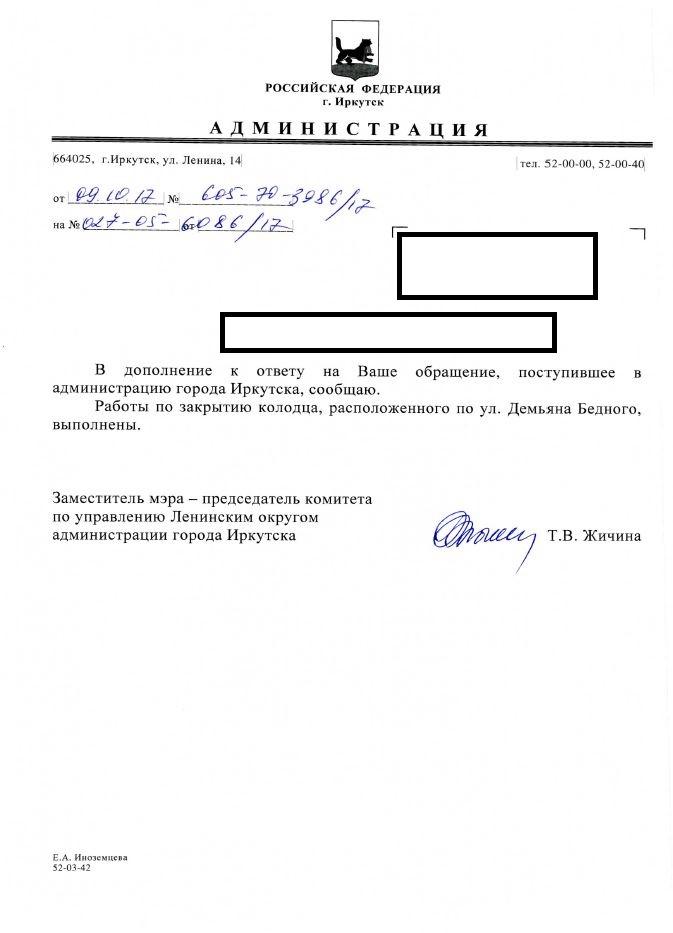 айГражданинОтправлено 11.09.2017: "Администрация города Иркутска"