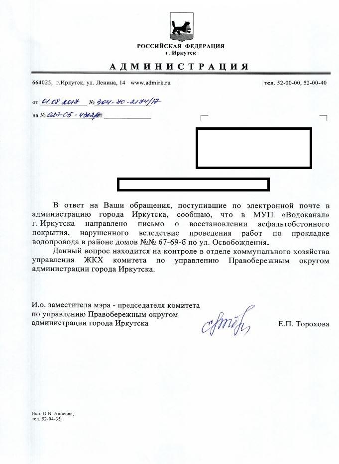 айГражданинОтправлено 10.07.2017: "Администрация города Иркутска"