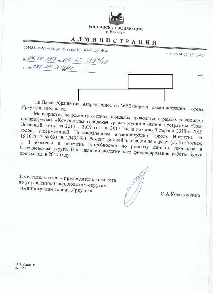 айГражданинОтправлено 04.08.2017: "Администрация города Иркутска"