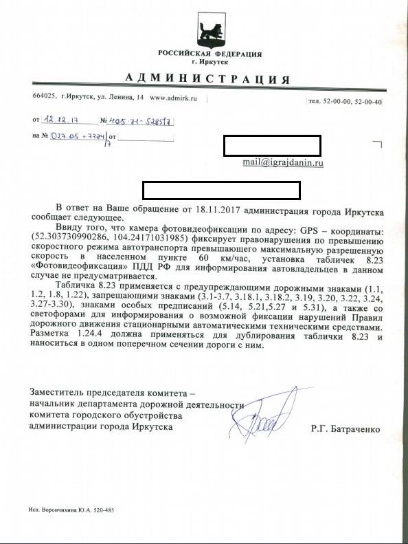 айГражданинОтправлено 18.11.2017: "Администрация города Иркутска"