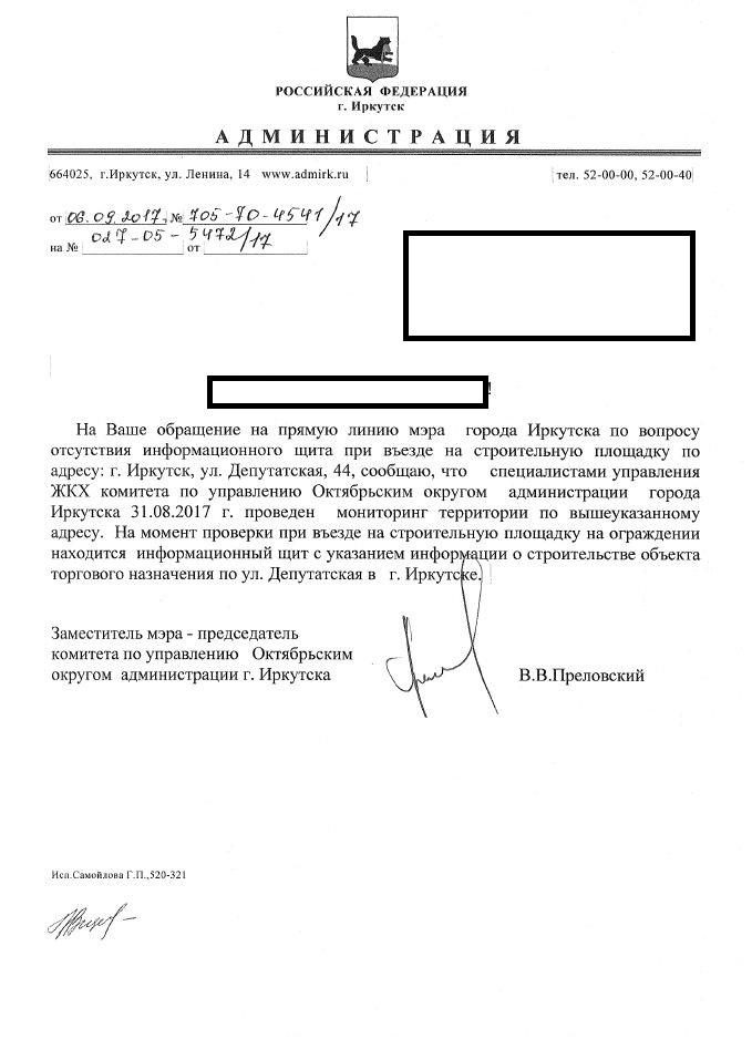 айГражданинОтправлено 21.08.2017: "Администрация города Иркутска"