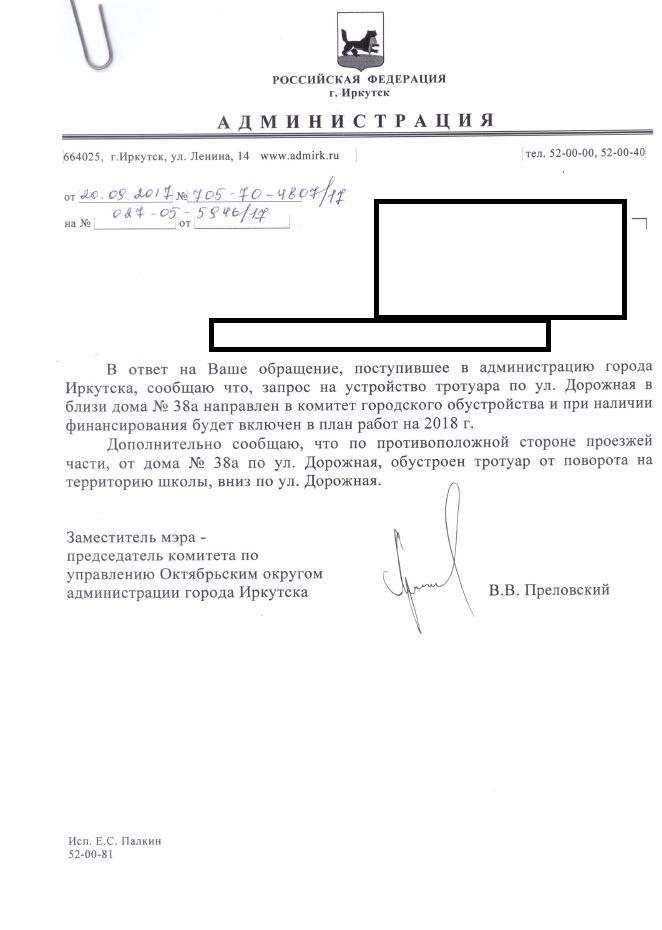айГражданинОтправлено 06.09.2017: "Администрация города Иркутска"