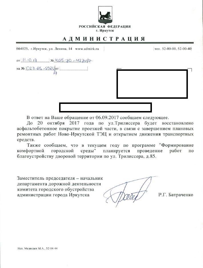 Отправлено 06.09.2017: "Администрация города Иркутска"