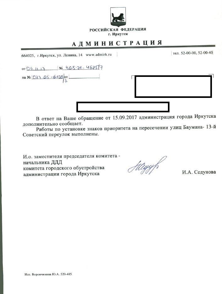 Отправлено 13.09.2017: "Администрация города Иркутска"