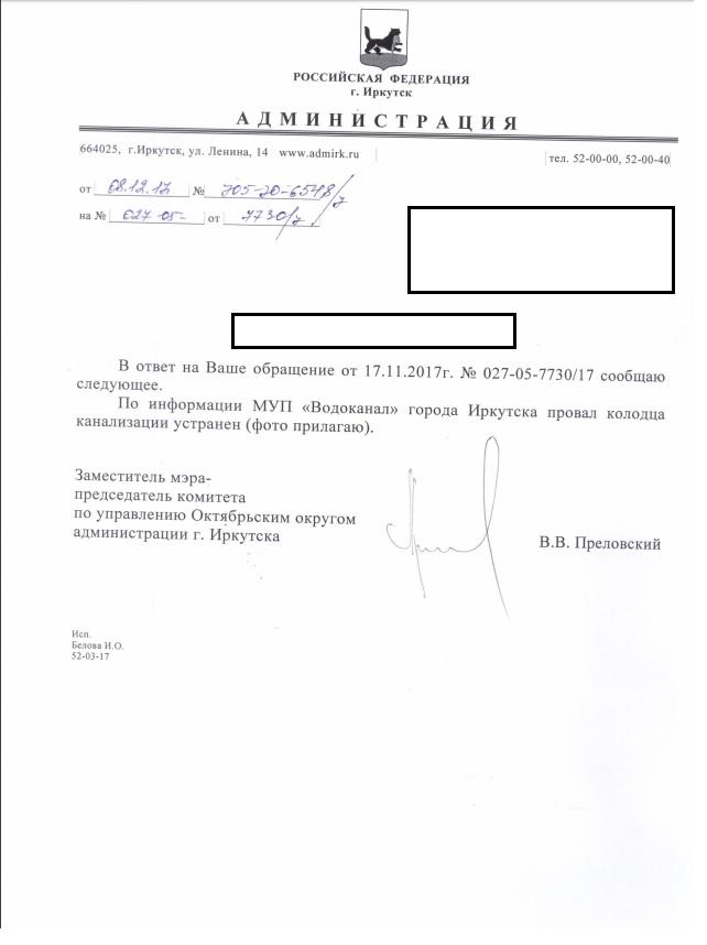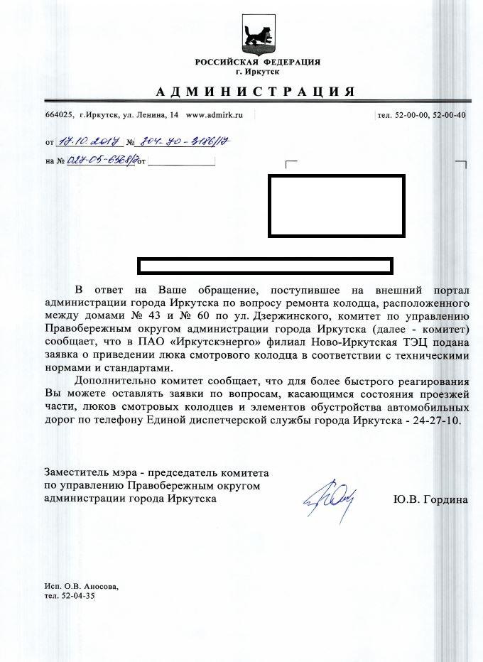 айГражданинОтправлено 17.11.2017: "Администрация города Иркутска"
