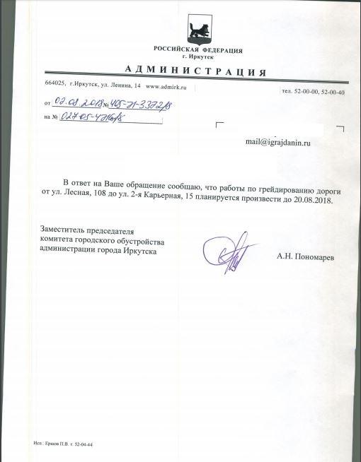 айГражданинОтправлено 07.07.2018: "Администрация города Иркутска"