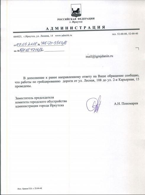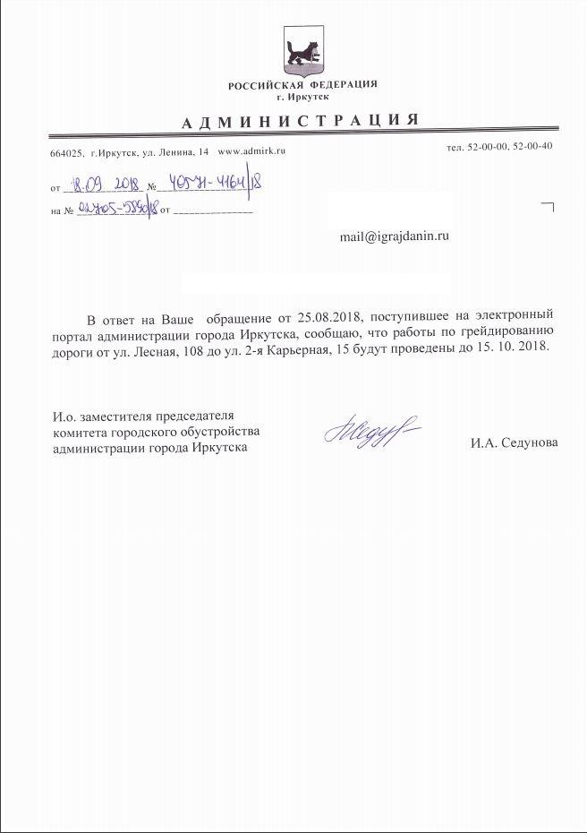 айГражданинОтправлено 24.08.2018: "Администрация города Иркутска"