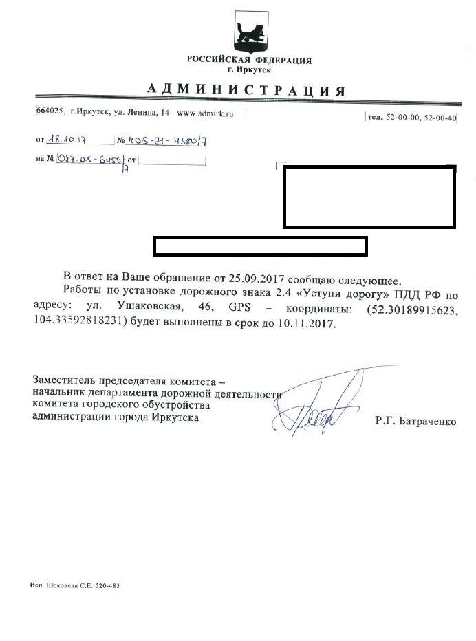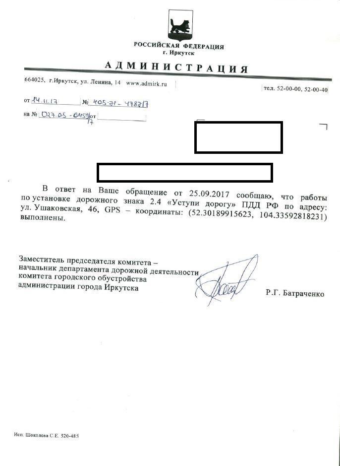 Отправлено 25.09.2017: "Администрация города Иркутска"