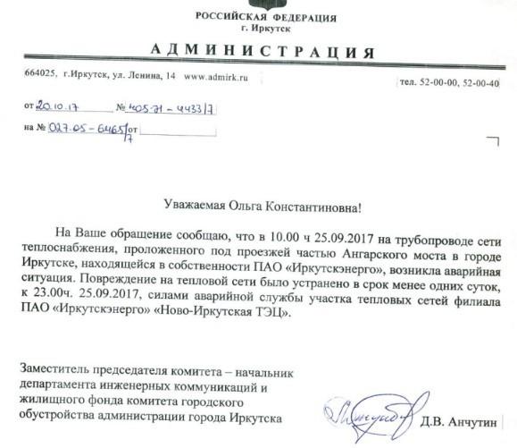 айГражданинОтправлено 25.09.2017: "Администрация города Иркутска"