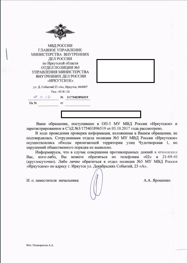 айГражданинОтправлено 02.10.2017: "ГУ МВД России по Иркутской области"