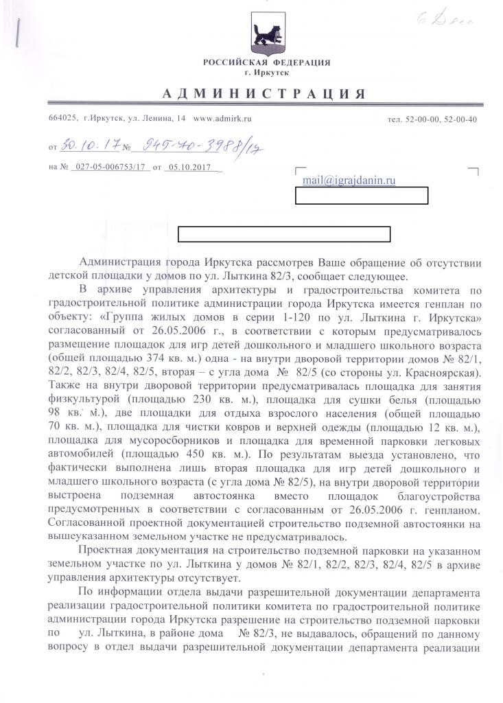 айГражданинОтправлено 04.10.2017: "Администрация города Иркутска"