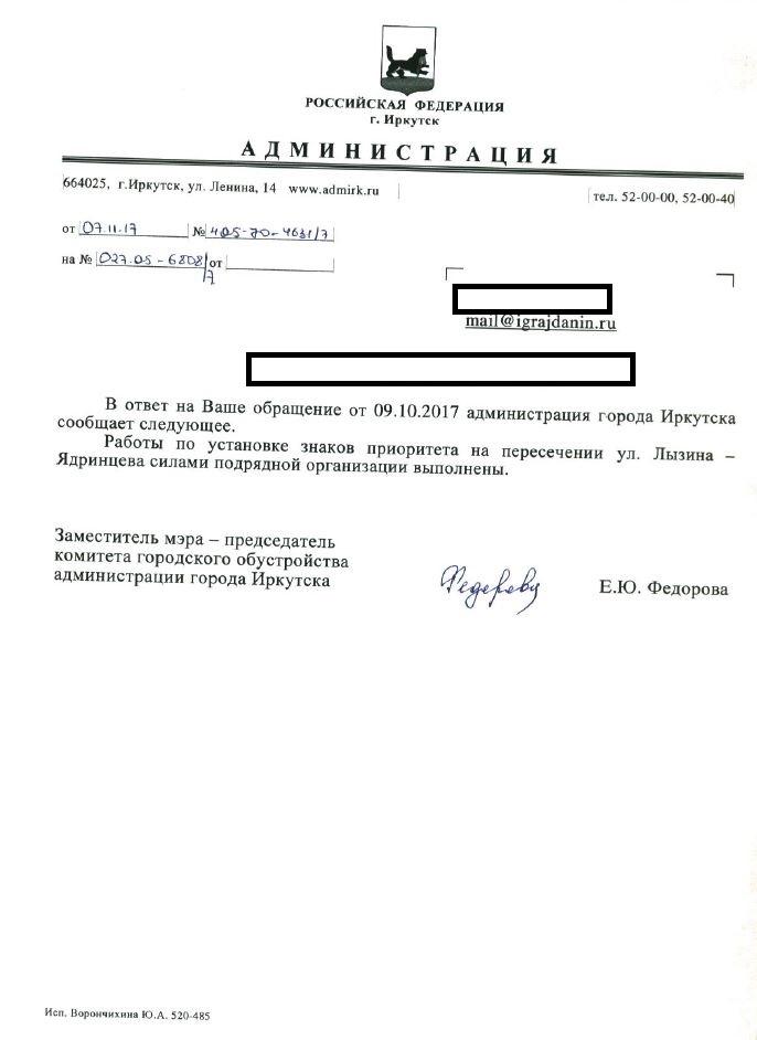 Отправлено 06.10.2017: "Администрация города Иркутска"