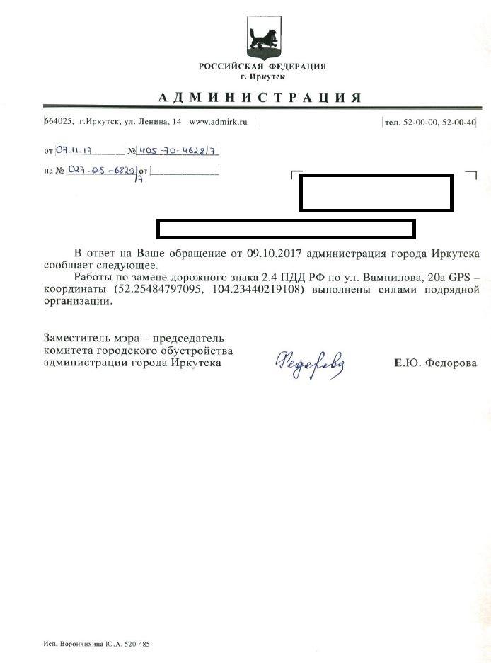 айГражданинОтправлено 06.10.2017: "Администрация города Иркутска"
