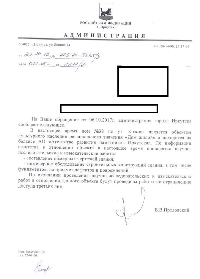 айГражданинОтправлено 06.10.2017: "Администрация города Иркутска"