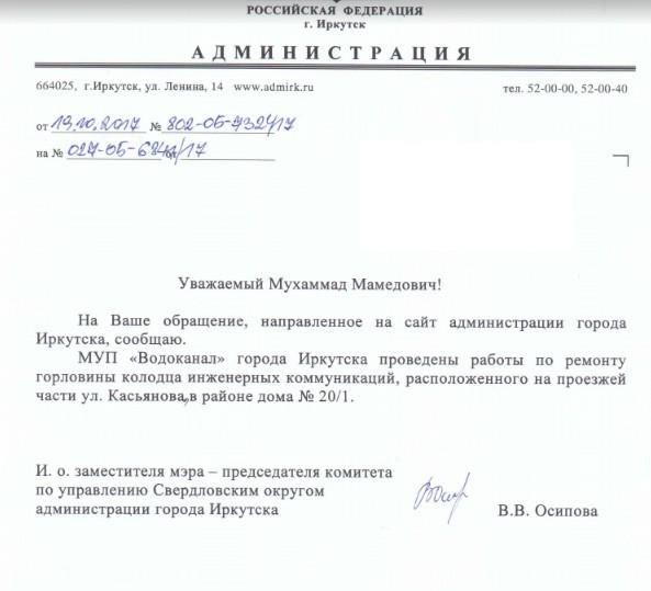 Отправлено 06.10.2017: "Администрация города Иркутска"